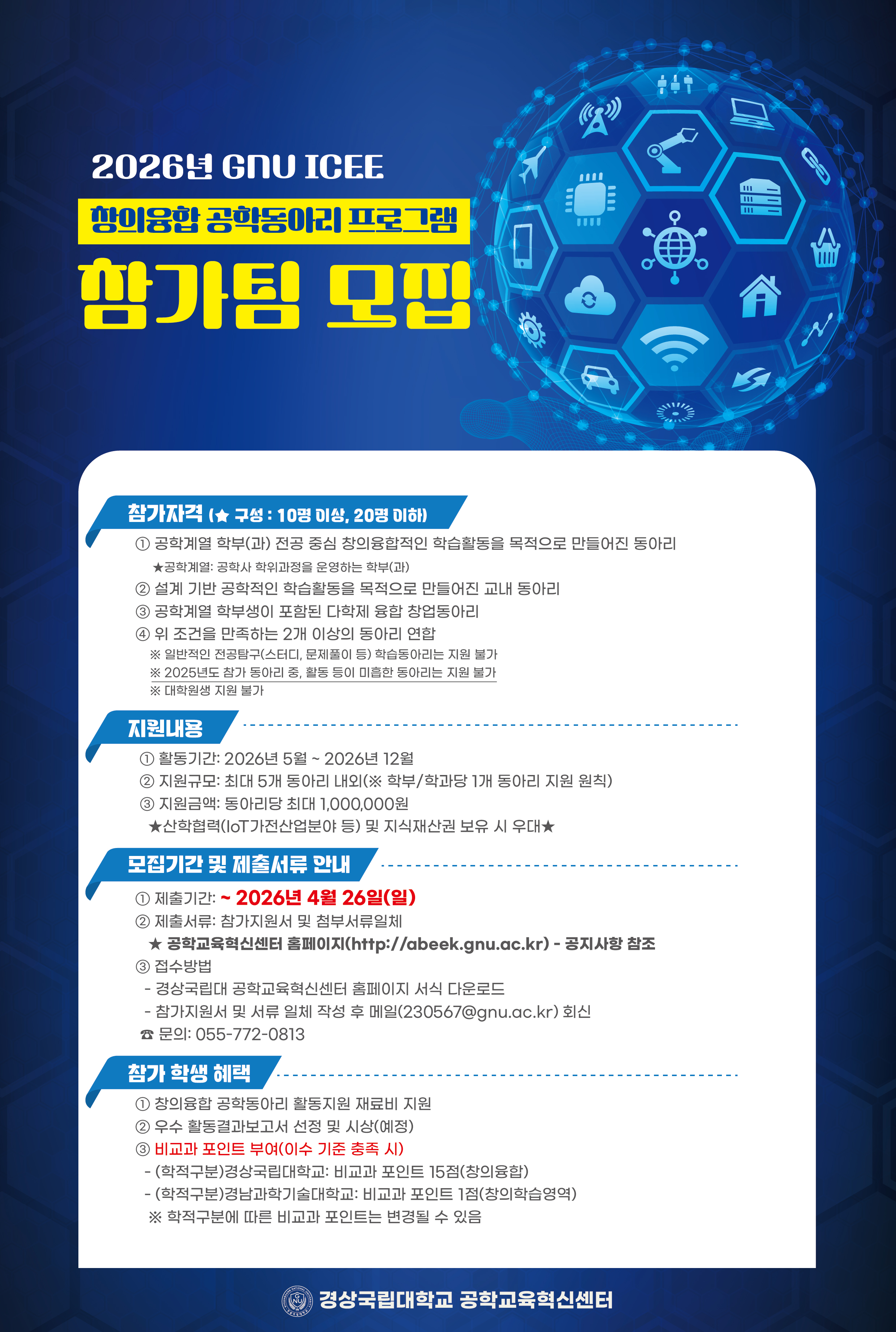 2026년 GNU ICEE 창의융합 공학동아리 모집 안내(~26. 4. 26. 까지)